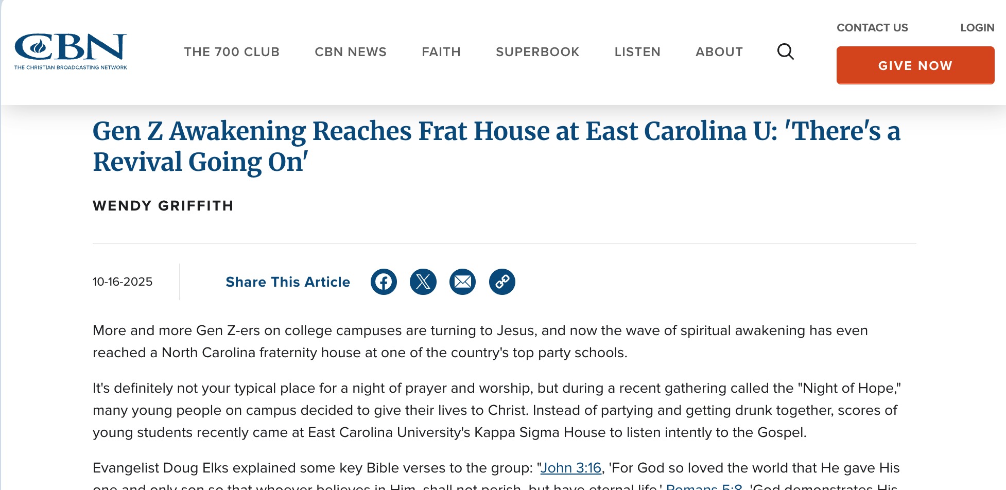 Gen Z Awakening Reaches Frat House at East Carolina U: ‘There’s a Revival Going On’